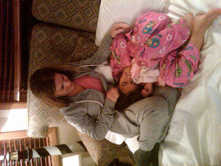 No power = no heat = no water = no light = ... All of us packed into a hotel room! Luckily our hote room was a suite. We all squished in, with kids on the floor, and me on the floor, and Brenda and Mayur on pull-out couch. If we weren't good friends before, we certainly are now!